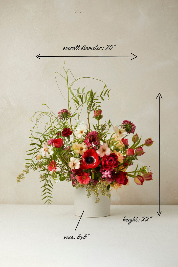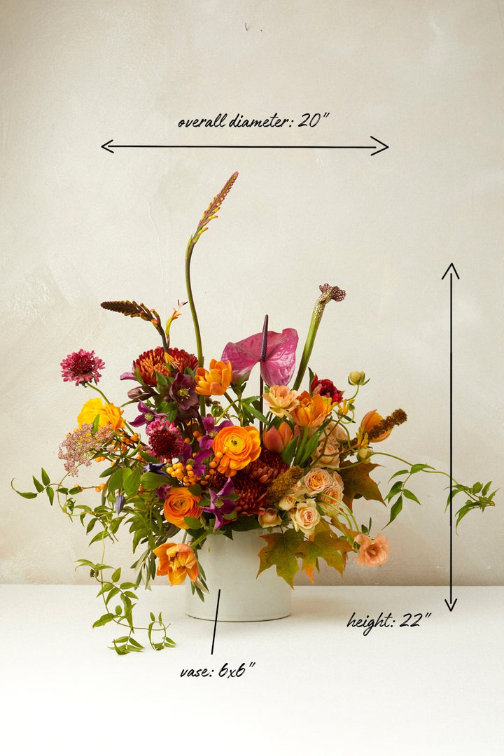 Make your message loud and clear with the ultimate statement arrangement. Overflowing with the freshest, seasonal blooms, the Abundance is perfect for the big moments and milestones.